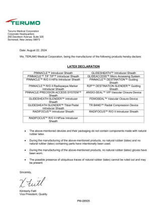 TERUMO Glide Technology™ hydrophilic coating enables easy insertion and removal.1