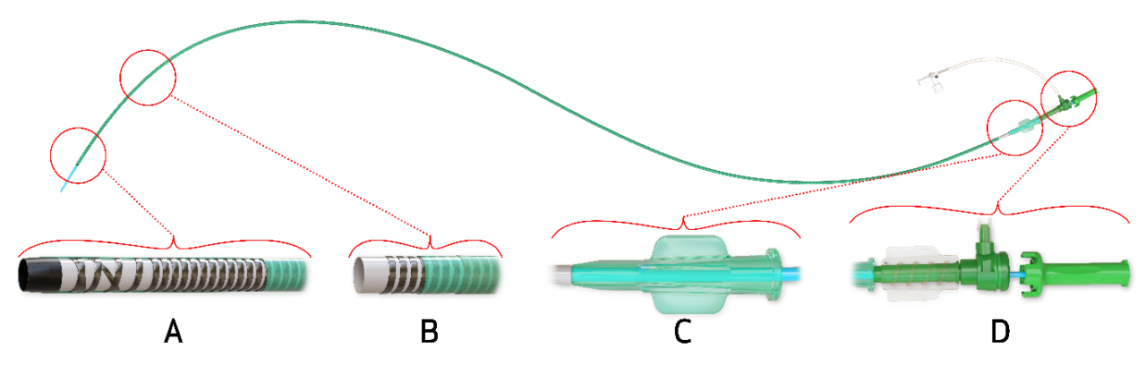 Device lengths designed to support coronary, neuro, visceral, and peripheral proceduresa: 75cm, 85cm, 95cm, 105cm, 119cm and 149cm