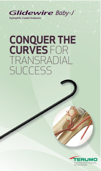 The TERUMO 1.5 mm GLIDEWIRE® Baby-J™ Hydrophilic Coated Guidewire combines the leading performance of the GLIDEWIRE® Guidewire product portfolio with design features ideal for transradial access: