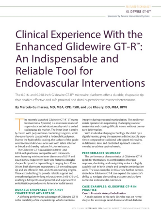 Glidewire GT-R is designed with a super elastic nickel-titanium (Ni-Ti) core and superior hydrophilic coating for enhanced durability and vessel selectivity.1