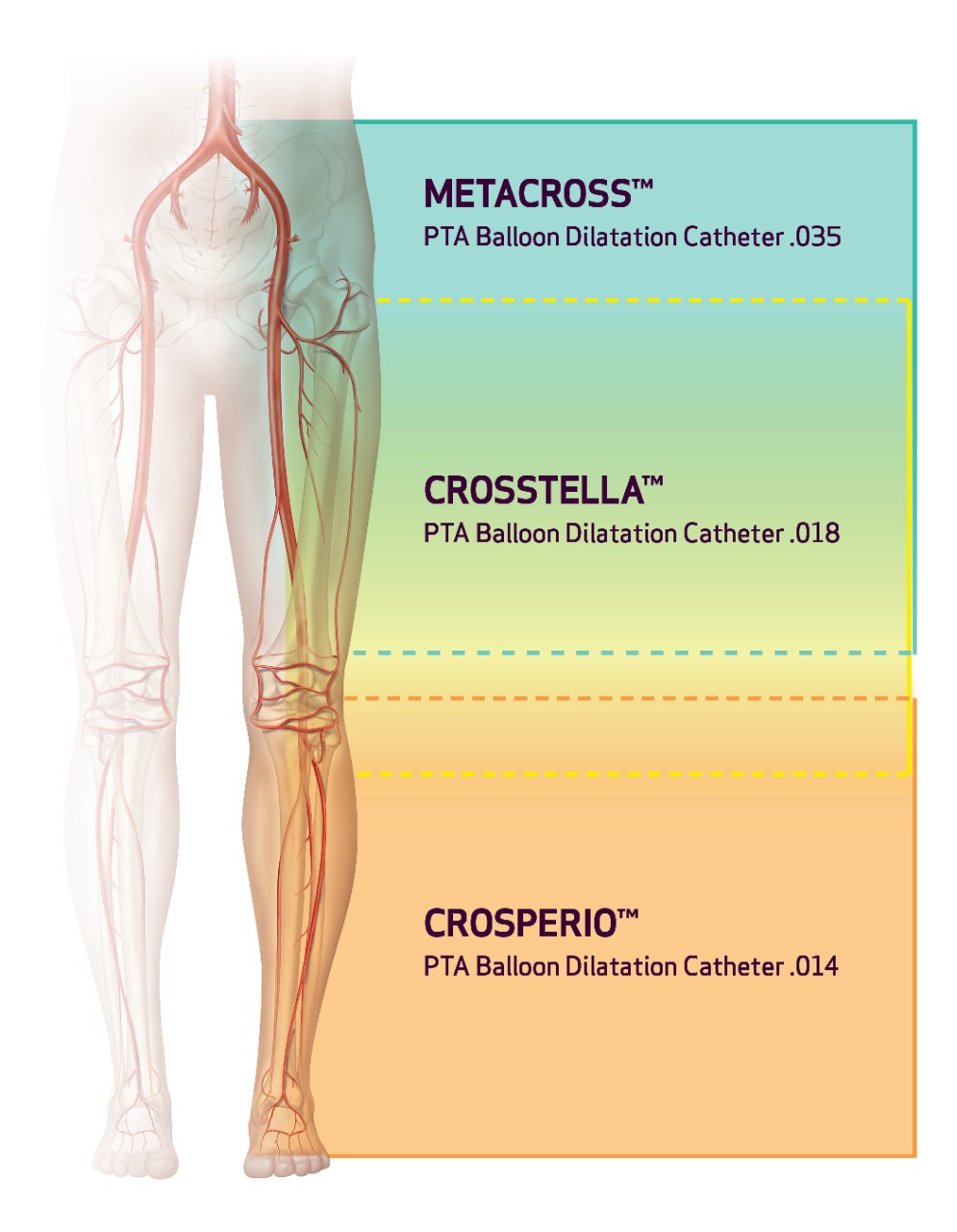 *Diameter range: METACROSS® RX/OTW (3-12 mm); CROSSTELLA® RX/OTW (2-6 mm); CROSPERIO® RX/OTW (1.5-4 mm)