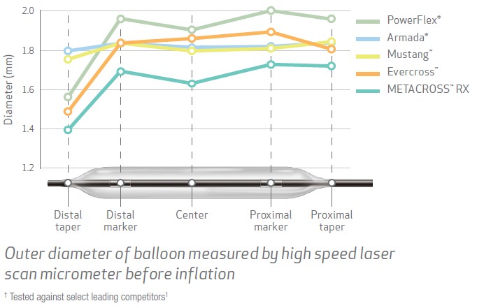 METACROSS® RX PTA Balloon Dilatation Catheter provides the smallest balloon profile when compared to select competitors tested.²