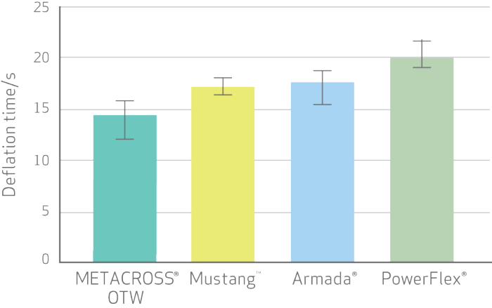 Well-designed dual lumen shaft of METACROSS OTW contributes to the lowest deflation time*