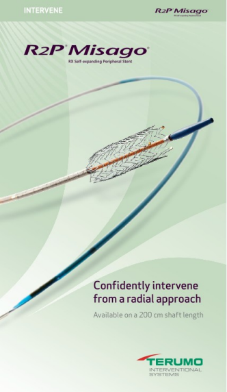 The R2P® MISAGO® RX Self-expanding Peripheral Stent is indicated to improve luminal diameter in symptomatic patients with de novo or restenotic native lesions or occlusions of the Superficial Femoral Artery (SFA) and/or proximal popliteal artery with reference vessel diameters ranging from 4 mm to 7 mm and lesion length up to 150 mm.